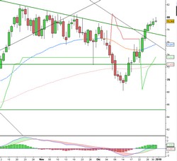 Ribasso che in realtà consisteva probabilmente in una zona di accumulazione di contratti, visto poi il rialzo pre-festivo al quale abbiamo assistito: attualmente sono iniziate a quota 80 le prime prese di profitto, che non dovranno spingere i prezzi al di sotto di 77$ per garantire il proseguo rialzista per tutto Gennaio verso i target di medio periodo, primo su tutti il livello chiave 90$.